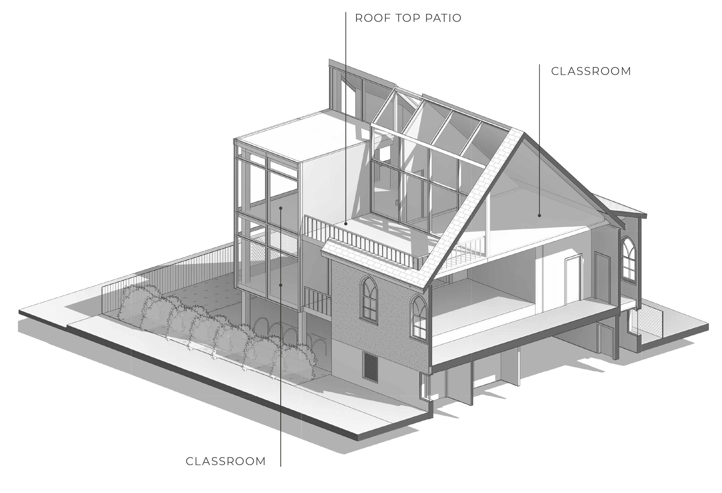 and redefine its role as a cultural landmark in the community. The goal is to create a space that not only meets functional needs but also expresses the identity of the centre as a vibrant place for gatherings, events, and the promotion of francophone culture.